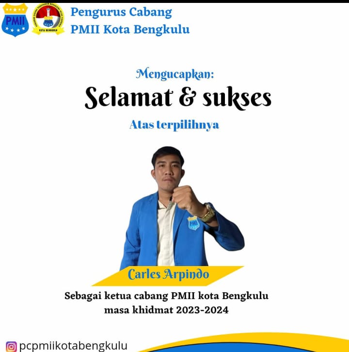 Carles Arpindo Nahkodai PMII Cabang Kota Bengkulu Masa Khidmat 2022 – 2023